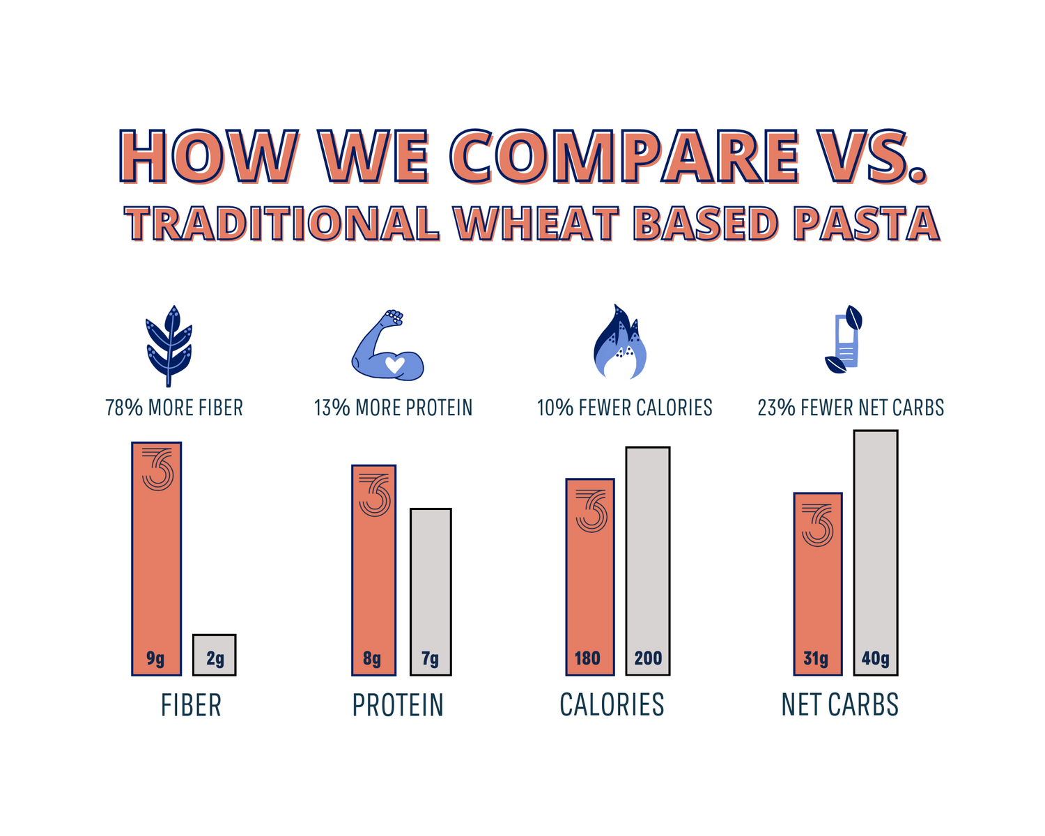 Because our pasta is made from a resistant starch wheat, it does just that in your body. Our pasta resists digestion in the small intestine and passes to your large intestine where it starts to breakdown and feed your microbiome.